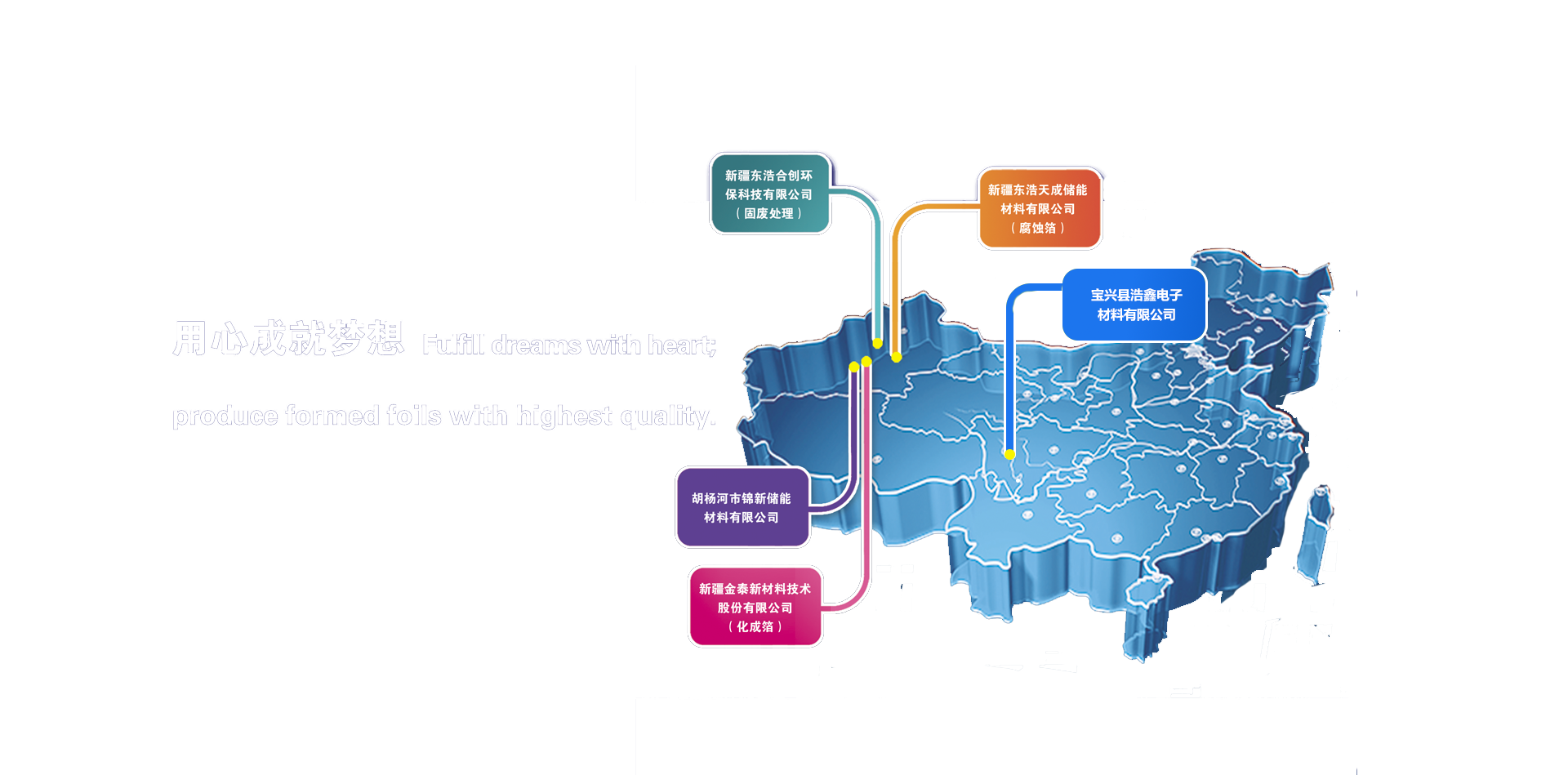 新疆金泰新材料技術股份有限公司成立于2011年11月,總部坐落在國家“絲綢之路經濟帶”的重要節點,新疆“金三角”中心位置——新疆生產建設兵團第七師胡楊河市天北經開區。總部廠區占地67畝,注冊資本7808萬元人民幣,現有化成箔生產線44條,年產鋁電解電容器專用高壓化成箔900萬平方米 ,年產值6.5億元人民幣。技術升級的同時不斷延伸產業鏈條,2018年在第七師胡楊河市五五工業園區內設立新疆東浩天成儲能材料有限公司,專業生產腐蝕箔。目前東浩天成正在加快新增快速線和技術升級,新增的6條快速線已達產并實現60萬平方米/月產能,同時,技術升級也在加快推進,2024年3月底前實現120萬平方米/月產能的規模,達產后,年營業額將達4.5億元人民幣。集團年營業額將超10億元...